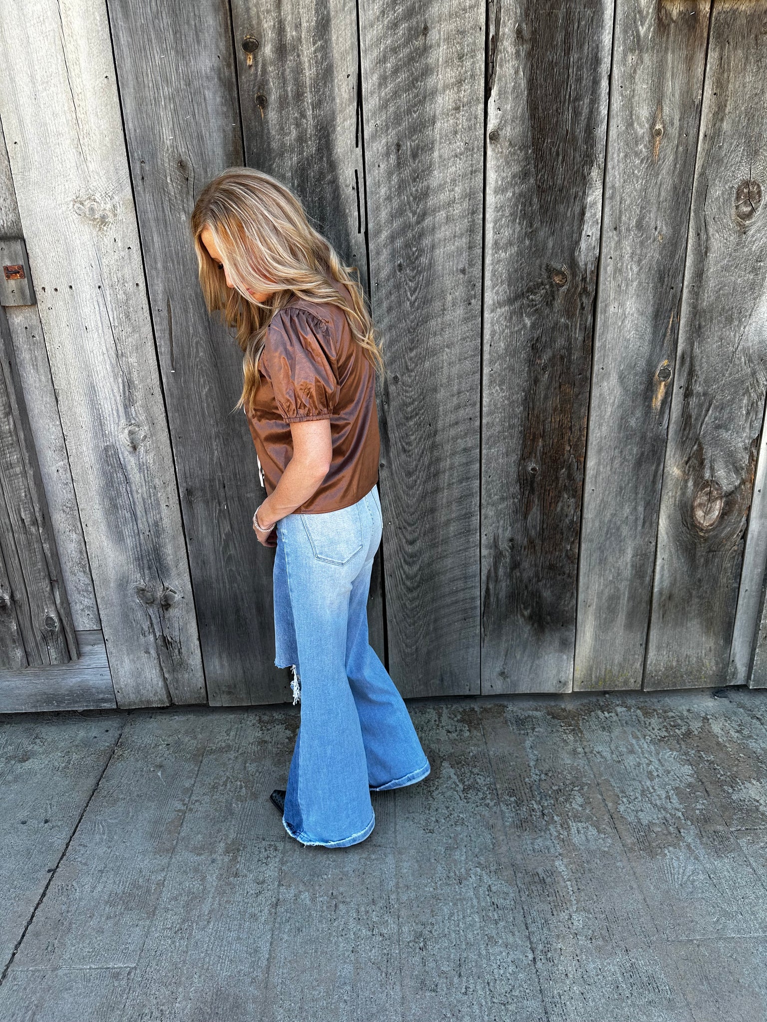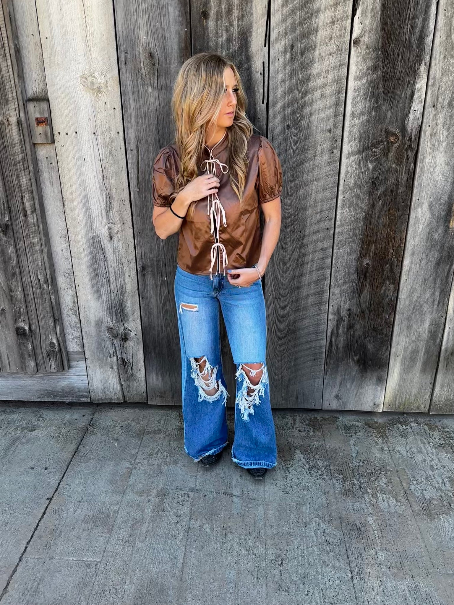 Pleather latte colored 3 tie top.
